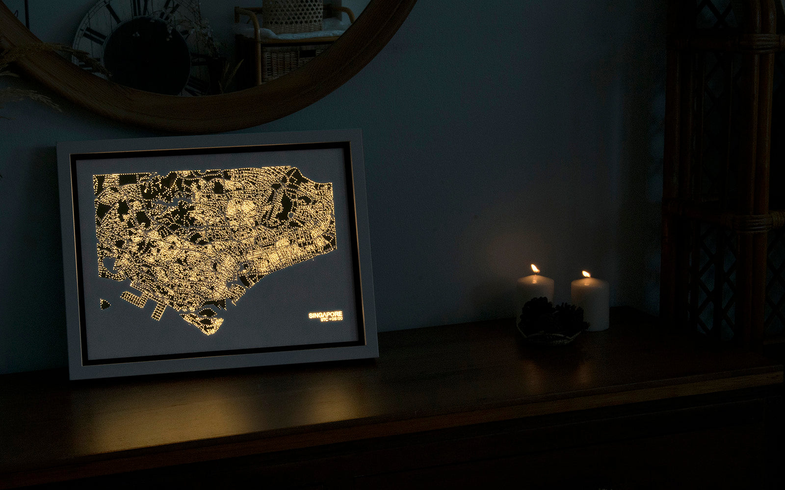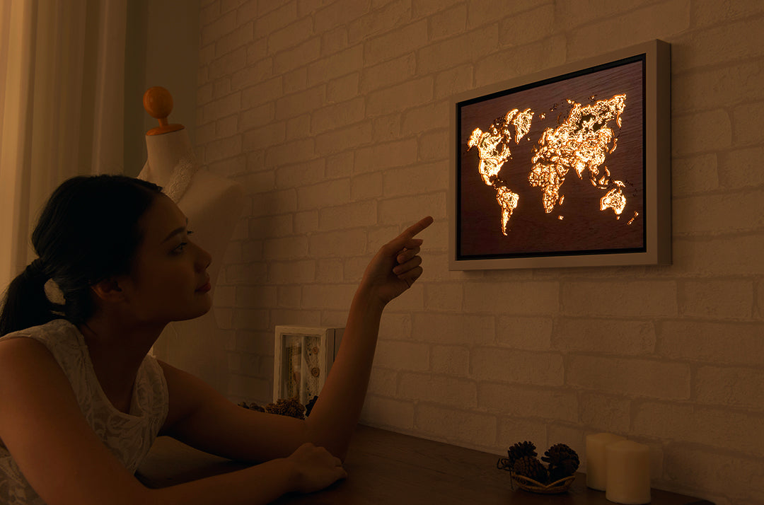 an award-winning modern lighting decoration ART, featured details 3D city map with more than a thousand illuminated LED effects simulating vibrant building lights & street lamps. Style your home in the day, and experience your night landing view at night.
